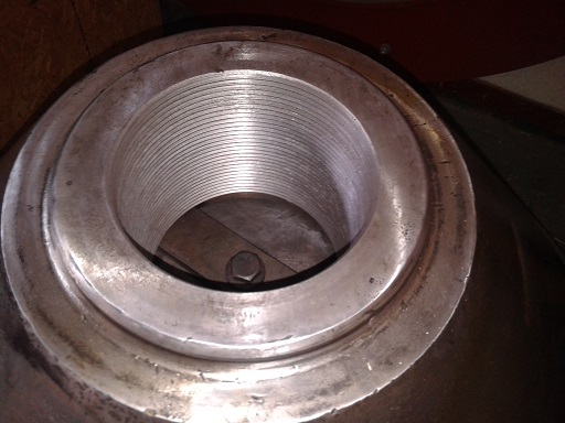2014-06-10 客戶HP500 破碎機(jī)動錐體在更換襯板時發(fā)現(xiàn)鎖緊螺栓不能拆卸,運(yùn)到我公司維修。由我司技術(shù)人員判定為動錐體內(nèi)螺紋損壞,同時檢查動錐體外錐面,發(fā)現(xiàn)磨損嚴(yán)重。